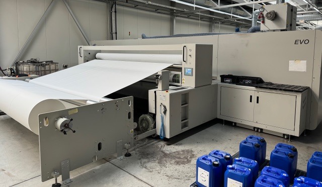 This machine is equipped with a versatile **EVO fabric/paper 340/32/16+16 configuration**, providing flexibility for different types of material. Though the machine is currently stopped, the heads have been well-maintained, ensuring longevity and reliability when brought back into operation.