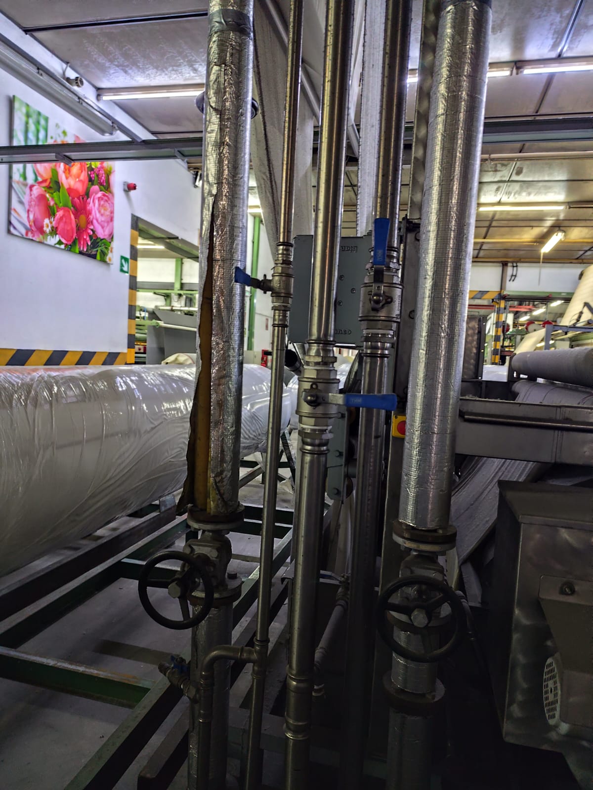 A four-cylinder drum dryer enables efficient fabric drying, while the A-frame exit system ensures smooth fabric handling. Its modernized components — including a new electrical panel, motors, inverters, and programmable control — make it suitable for standalone use or integration with a singeing machine.